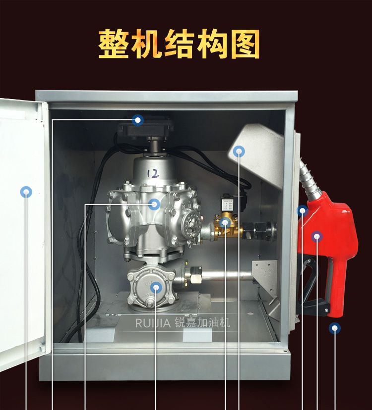銳嘉車載無泵加油機50型是一款全自動 高精度的車載無泵加油機,本加油機采用龍野65流量計,流量最高達90L/MIN,可以打印小票,遙控加油,計量精度達0.3%,一年保修 終生維護 全國包郵。